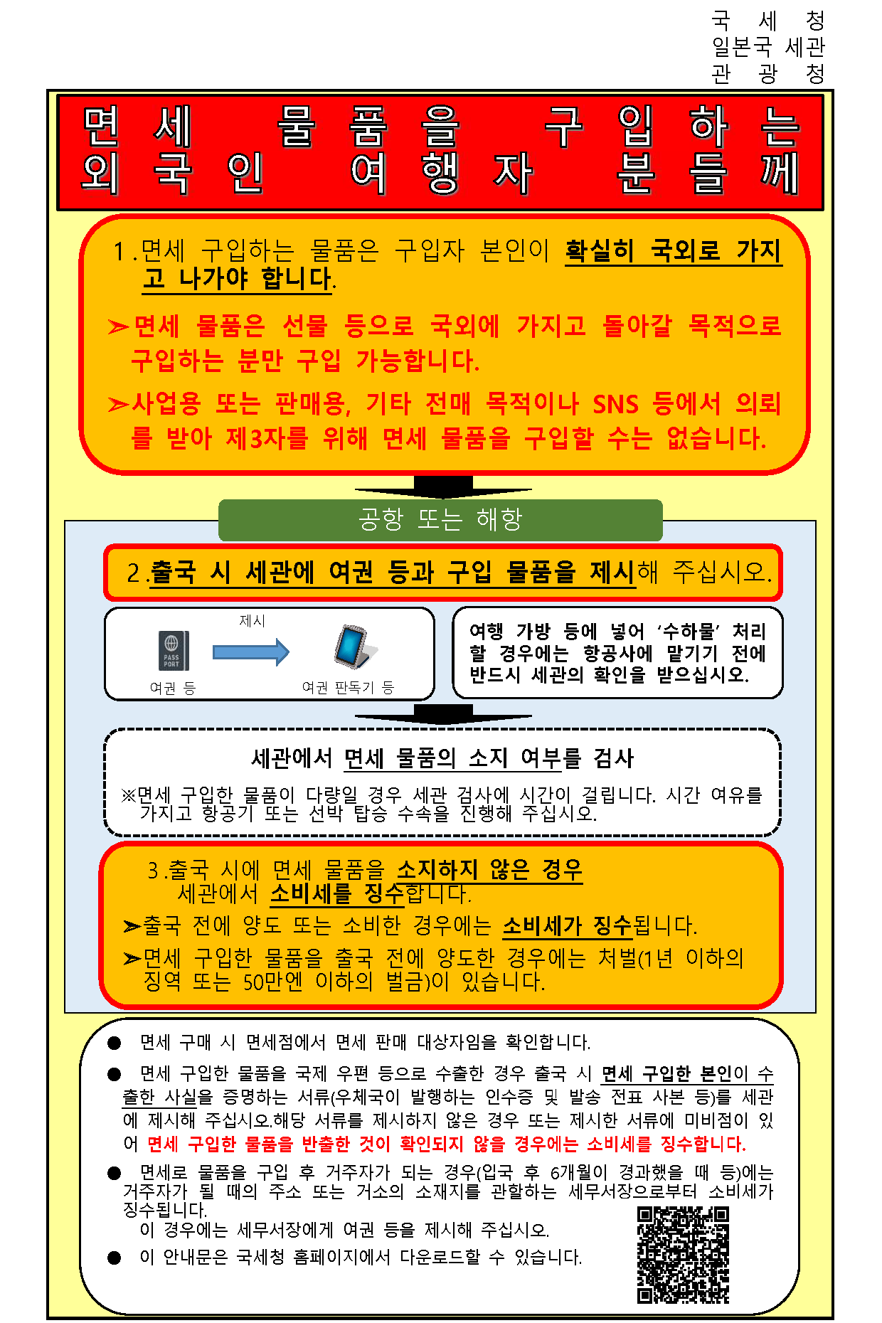 외국인 여행자 여러분께: 주의해 주십시오